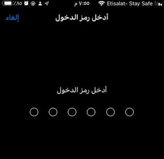 سوف تظهر لك شاشة إدخال رمز المرور.